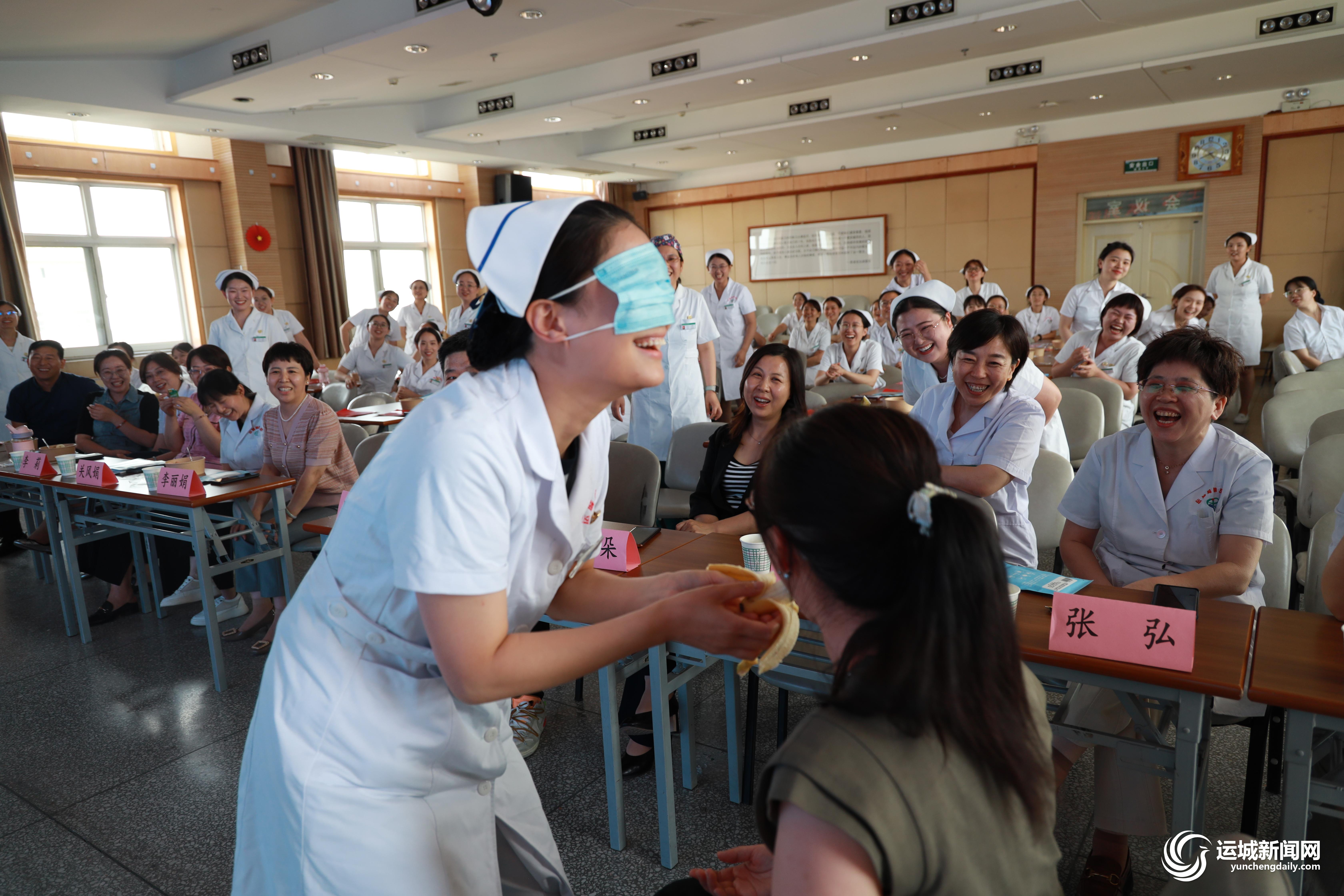 5月11日,运城同德医院举办护士节系列活动之团建活动——盲人吃香蕉。当日,护士们在欢声笑语中度过了一个愉快的节日。 董春芳 摄