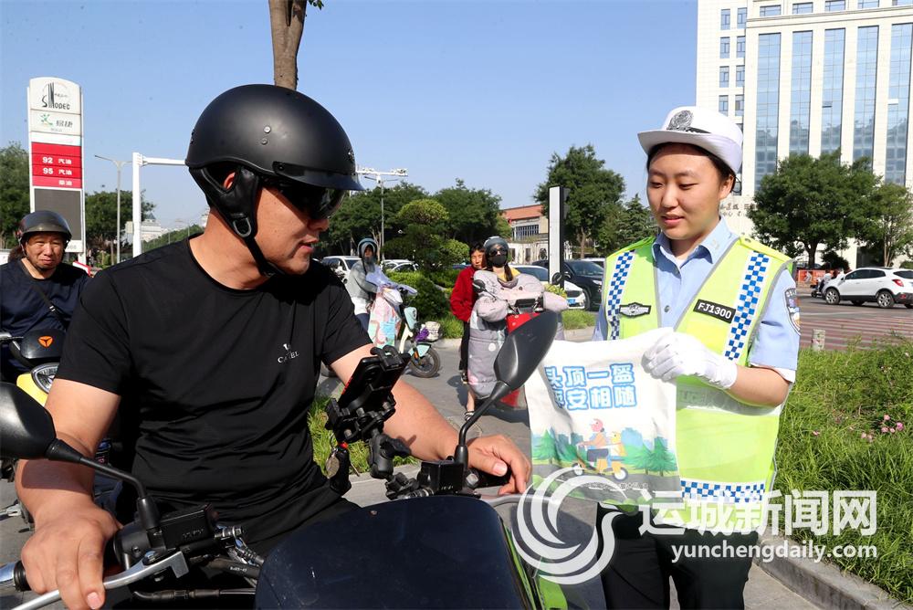 5月13日,盐湖交警大队持续开展驾乘电动自行车不佩戴安全头盔专项整治行动,促进城市精细化管理。 葛崇收 谭建春
