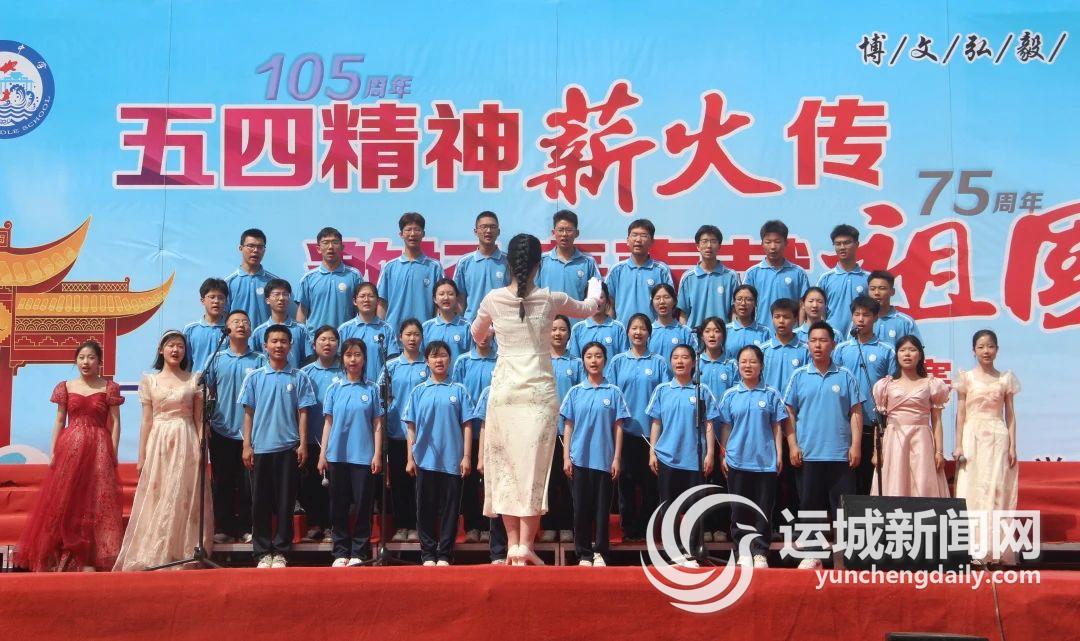 运城晚报讯(记者 杜磊)5月10日、11日,河津中学开展“五四精神薪火传 激扬青春献祖国”主题歌咏比赛,全校2000余名师生以昂扬的精神面貌唱响青春旋律,表达对祖国母亲的祝福(下图)。