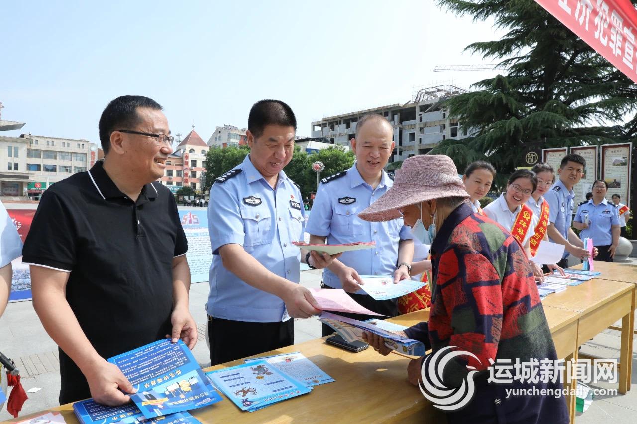 运城晚报讯(记者 张蕊彤)5月15日,绛县公安局联合绛县农村商业银行等多家金融单位,在绛县会堂广场举行以“与民同心 为您守护”为主题的打击和防范经济犯罪宣传活动。