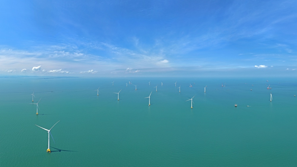 5月21日,记者前往广西首个海上风电示范项目——防城港海上风电示范项目A场址,探访正在加紧建设的海上风电场。该项目将建设83台单机容量8.5兆瓦的风电机组。目前,已安装风电机组29台,其中15台已实现并网发电。