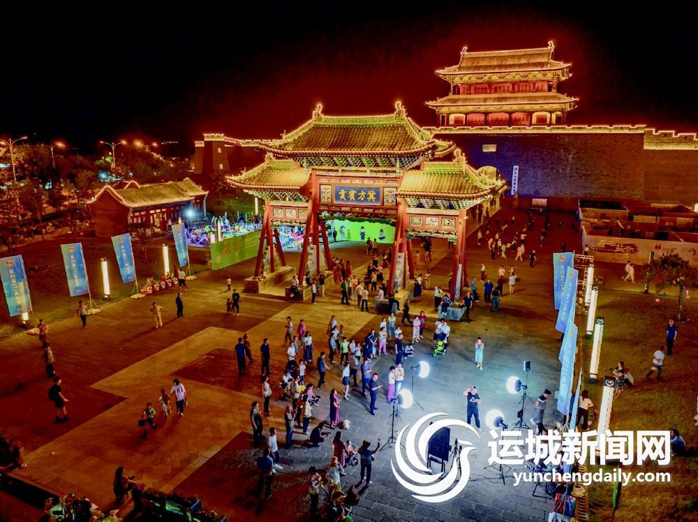 市民在河东池盐文化博览园中禁门广场消夏