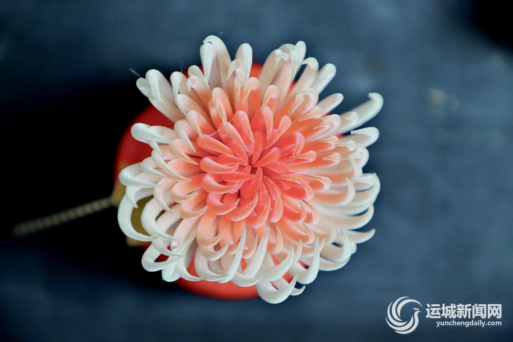 近日,在运城市青年夜校聚集地的教室里,进行了一堂别开生面的手工课——非遗绒花课,学员们认真地听老师讲梳绒的手法和注意事项。刷子自上而下地梳理着,不一会儿,缠作一团的绒线就成了丝丝分明的绒丝。