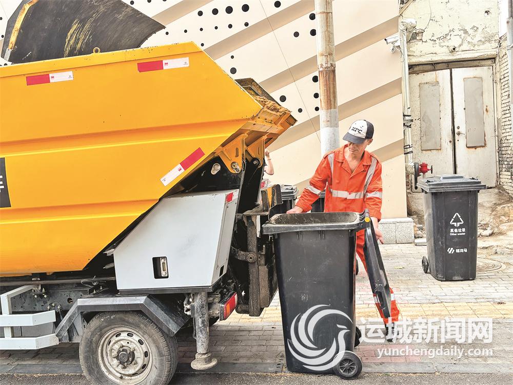 “工作人员动作真迅速。”“垃圾收集流程自动化很强。”……25日一早,记者在市区潞村街运城火车站附近的垃圾收集点看到,身穿黄色制服的保洁工人将标有“其他垃圾”的黑色垃圾桶悬挂在垃圾清运车上,简单按下操作按钮后,随着垃圾桶缓缓升高,里面的垃圾全部倾倒在垃圾清运车里,围在一旁观看的“分类体验官”啧啧称赞。