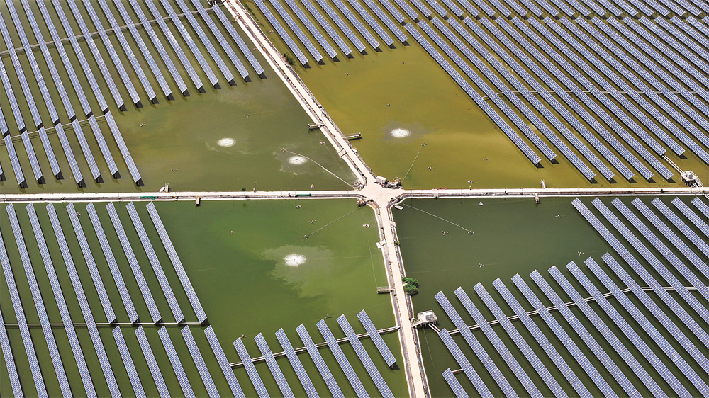 宁夏银川市贺兰县大力发展“渔光一体”的立体渔业养殖方式,充分利用鱼塘水域面积,将光伏发电和渔业养殖相结合,形成“水上发电、水下养殖”的产业模式,单位土地面积经济价值显著提升,实现土地资源的高效利用和绿色发展。