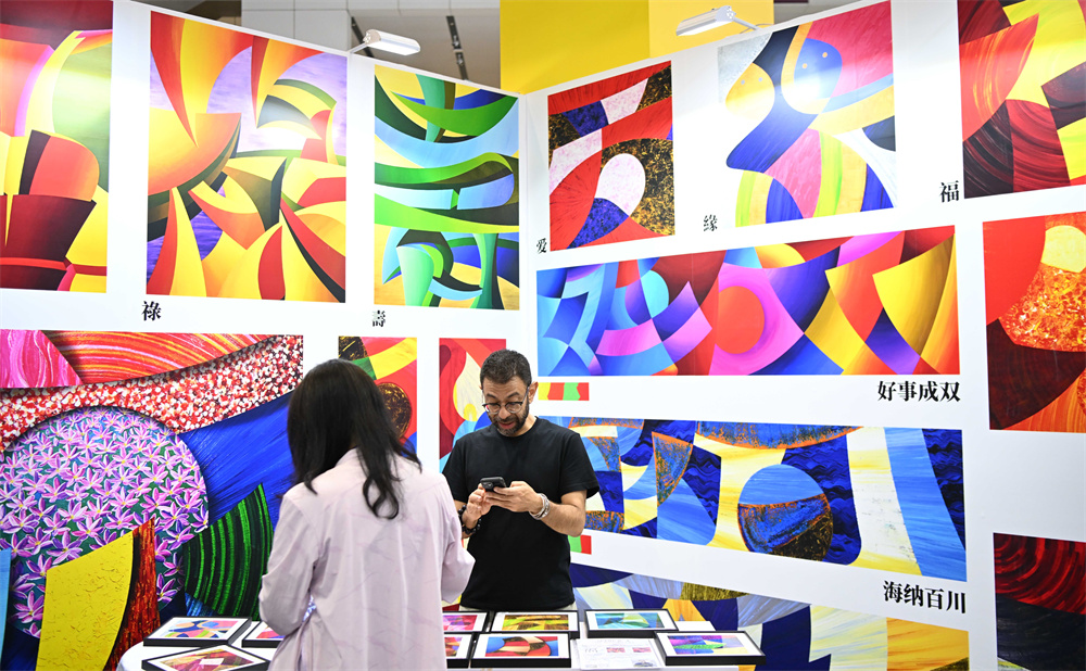 5月24日在第二十届中国(深圳)国际文化产业博览交易会上拍摄的外国展商的汉字艺术作品。