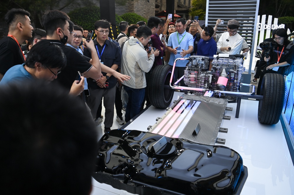 5月28日,参观者在西安城墙永宁门了解比亚迪第五代DM技术。