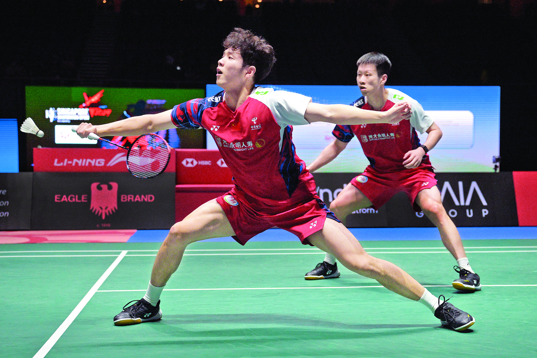 ▲6月2日,何济霆(左)/任翔宇在比赛中。当日,在新加坡羽毛球公开赛男子双打决赛中,中国组合何济霆/任翔宇2比0战胜印度尼西亚组合阿尔菲安/阿迪安托,夺得冠军。
