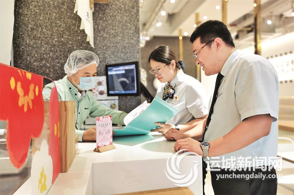 运城农商银行工作人员在“池奈蛋包饭”了解经营情况。 荆 圆 摄