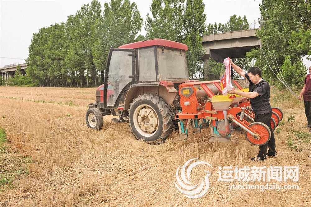 闻喜县抢抓晴好天气夏播玉米。图为近日该县东镇镇东姚村村民在机播玉米。卫京燕 摄