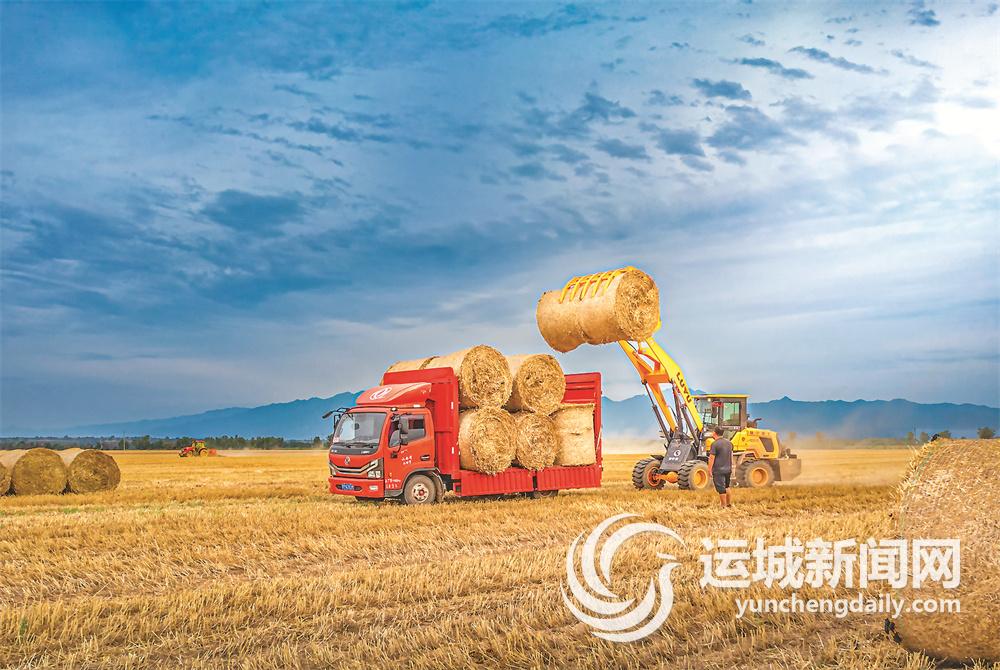 眼下正是小麦收获的关键时期,田间地头一派繁忙景象。6月3日,永济市张营镇农机手驾驶机械将打捆好的小麦秸秆运输离田。近年来,永济市张营镇持续贯彻新发展理念,从群众利益出发,推广秸秆综合利用技术,对农作物秸秆进行回收利用,促进经济效益和生态效益“双丰收”。