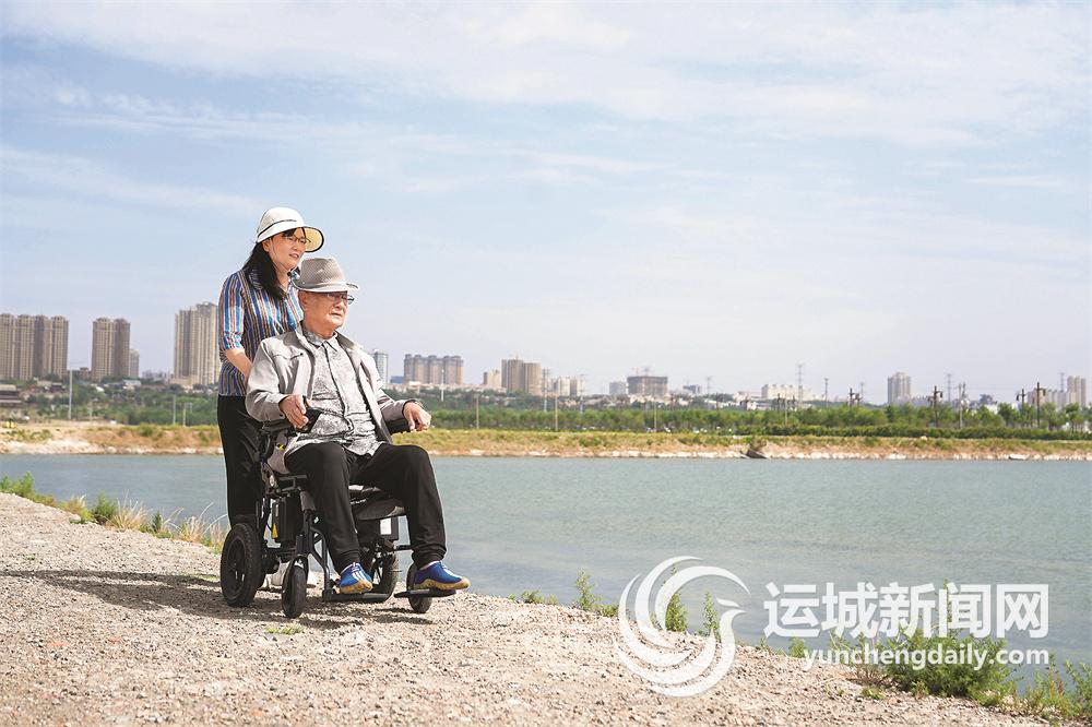 在舜帝公园,郑永科熟练地操纵着电动轮椅,郑大姐在旁边,不急不躁地陪伴着老人。不远处,舜帝手抚五弦琴的塑像在阳光下熠熠生辉。父女俩相处的动人画面便是德孝文化最好的诠释。