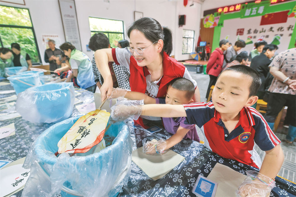 近年来,诸暨市东白湖镇依托乡镇公共服务空间,以传统节日为载体,持续开展文化下乡、“共享五福”等惠民服务,丰富乡村百姓的精神文化生活,增强乡土文化的凝聚力与感染力,描绘出一幅幅生动的乡村文化振兴画卷。 新华社记者 徐 昱 摄