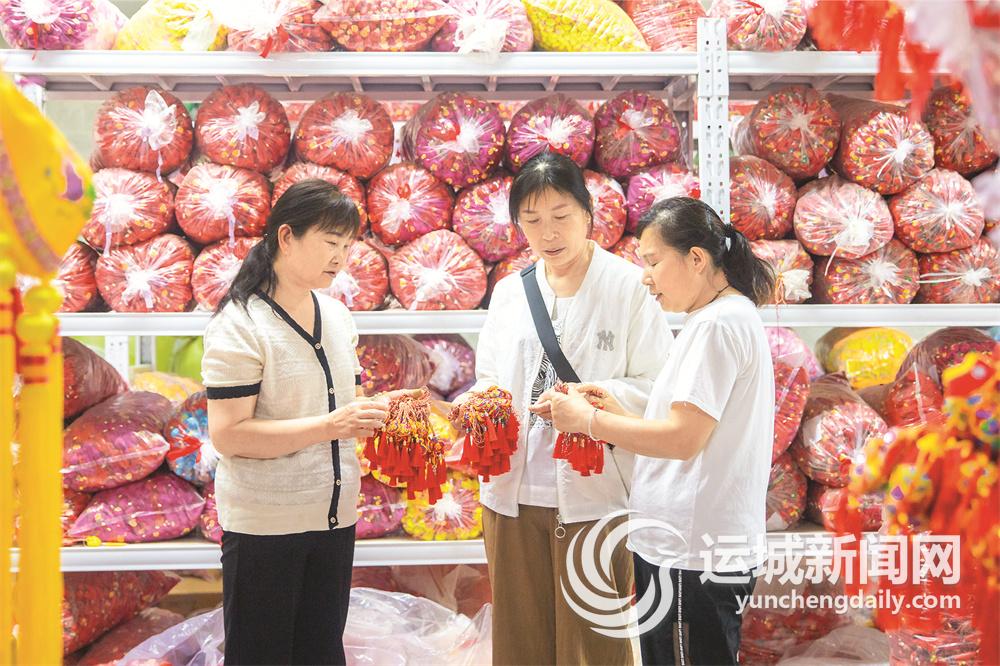 6月4日,在夏县山西嫘祖文化布艺有限公司,市民在挑选端午香包。特约摄影 姚中吉 摄
