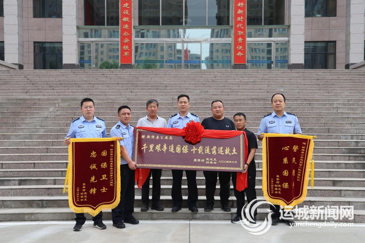被盗石狮找回后,泉掌村村委会向新绛县公安局送上锦旗。