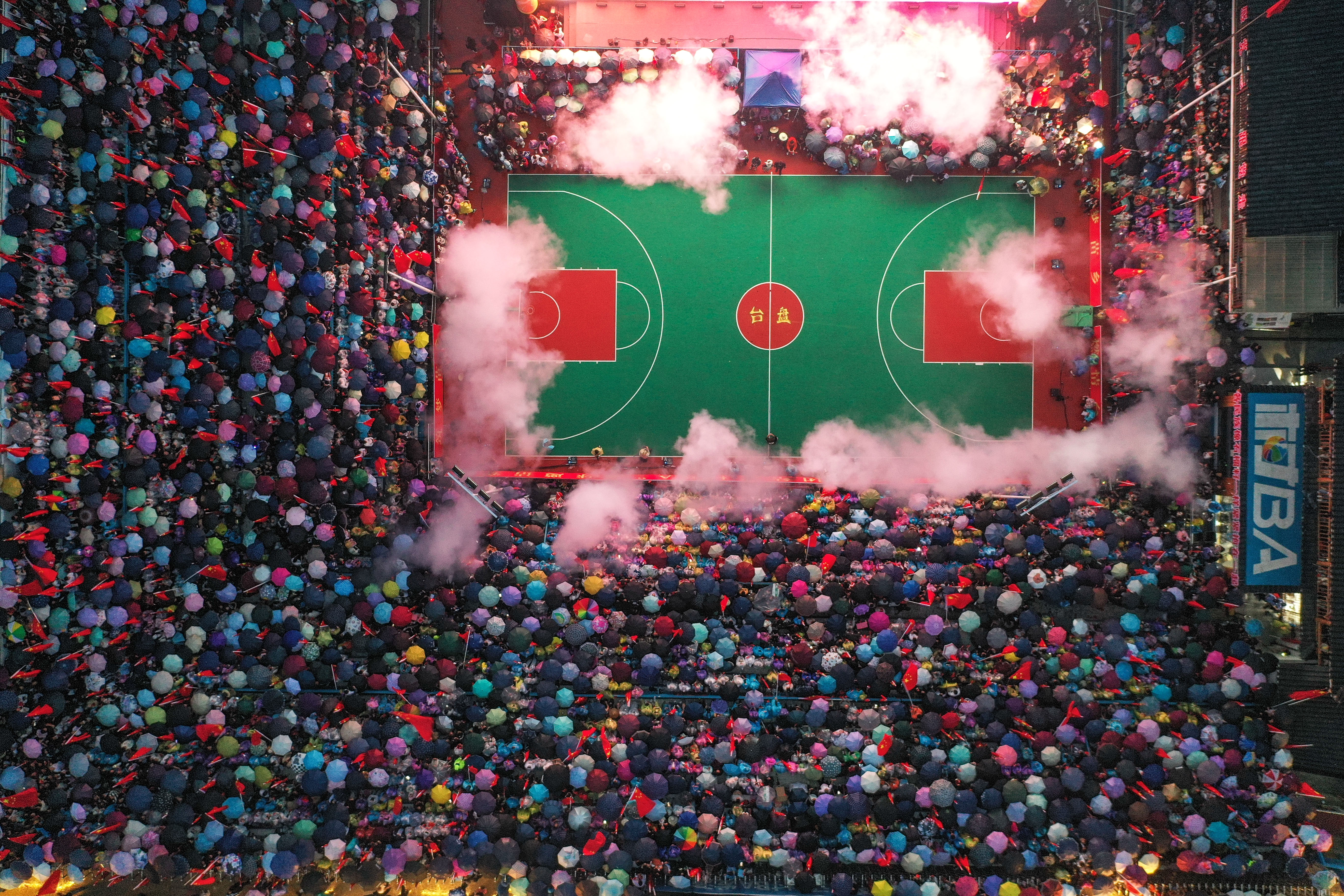 这是6月9日拍摄的全国民族团结篮球邀请赛开幕式现场(无人机照片)。