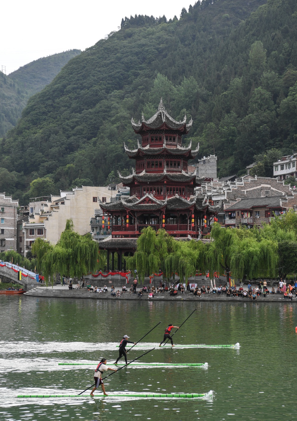6月11日,参赛队员在贵州省镇远县进行独竹漂比赛。