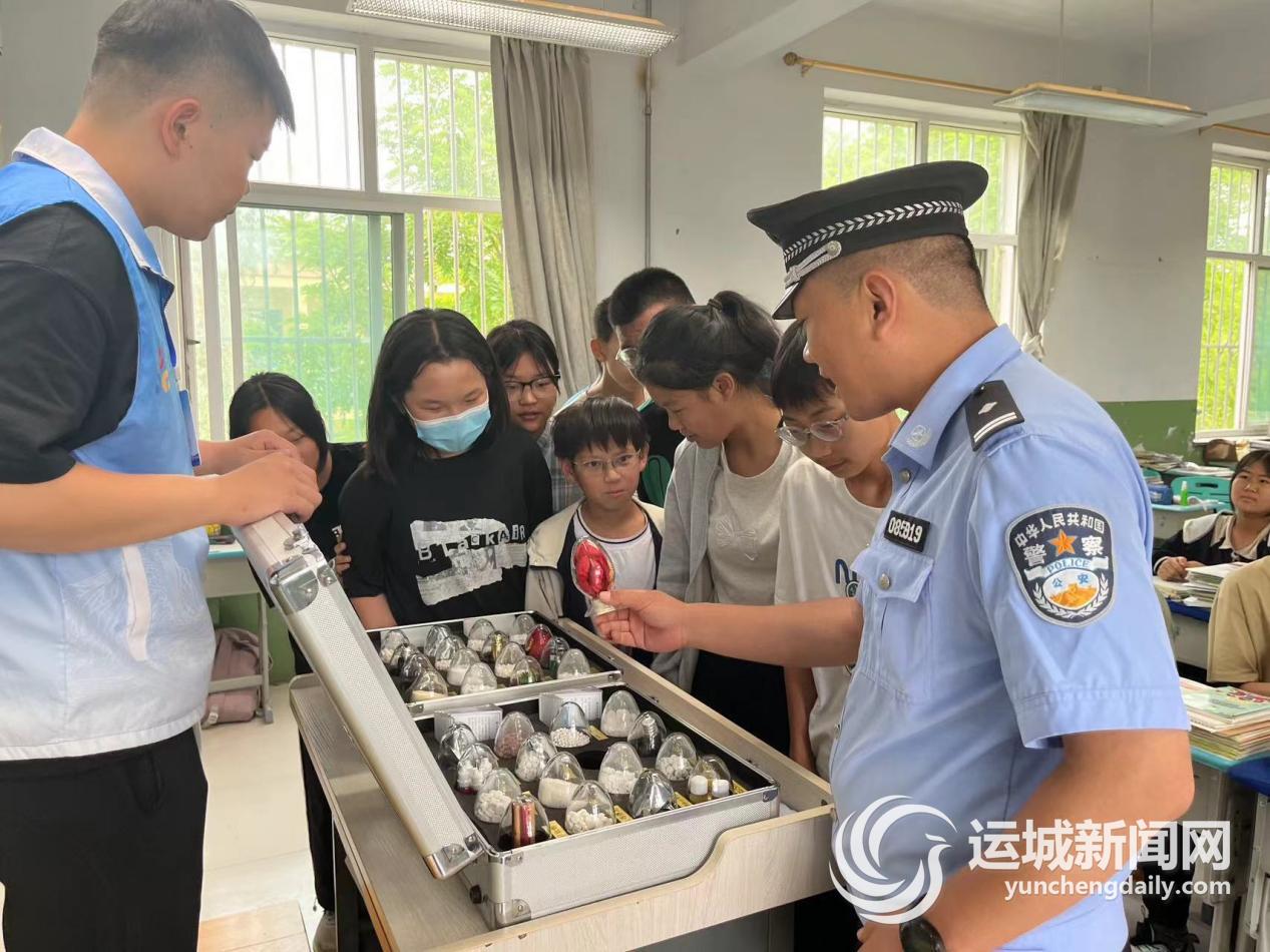 盐湖公安分局北相派出所联合北相镇政府、禁毒社工走进北部新区示范学校和运城学院,为师生们讲解了各种常见的毒品及制毒工具,以及如何辨别毒品、如何防止毒品通过商品向外流通等禁毒相关知识。
