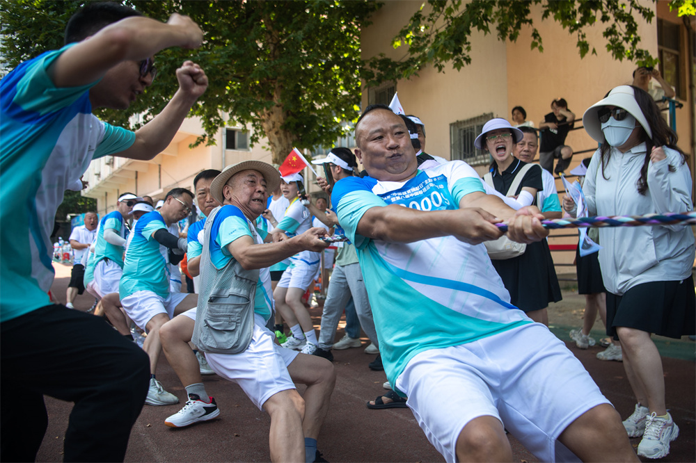 6月12日,参赛选手在拔河比赛中。当日,第八届中国移植运动会在武汉举行。运动会设置竞技项目和创意趣味项目,来自全国各地的300多名器官移植康复者参加了本届运动会。6月11日是第八个“中国器官捐献日”。