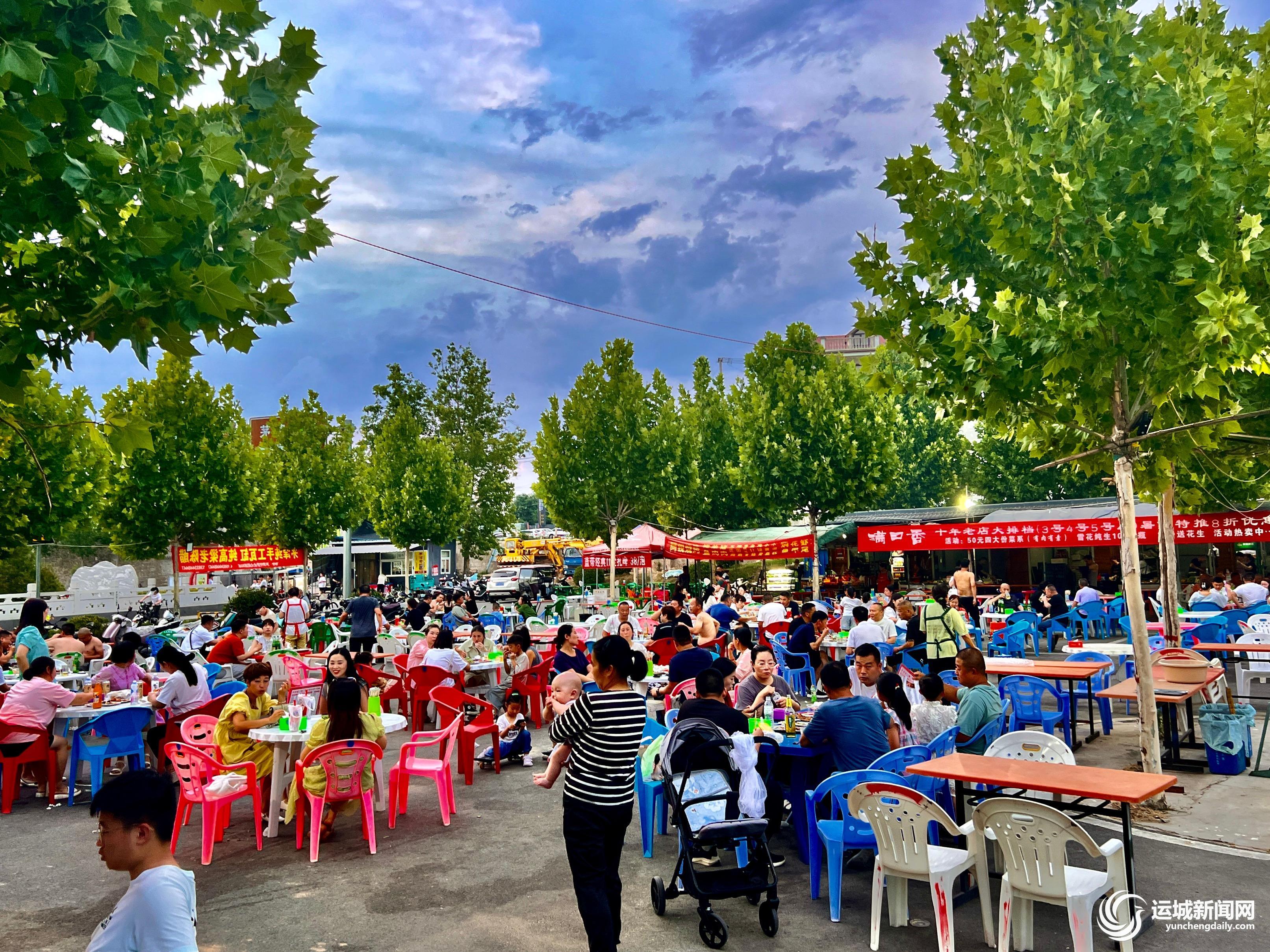 6月14日傍晚,平陆县茅津渡口黄河岸畔美食摊上,市民、游客在品味美食。 特约摄影 郝 健 摄