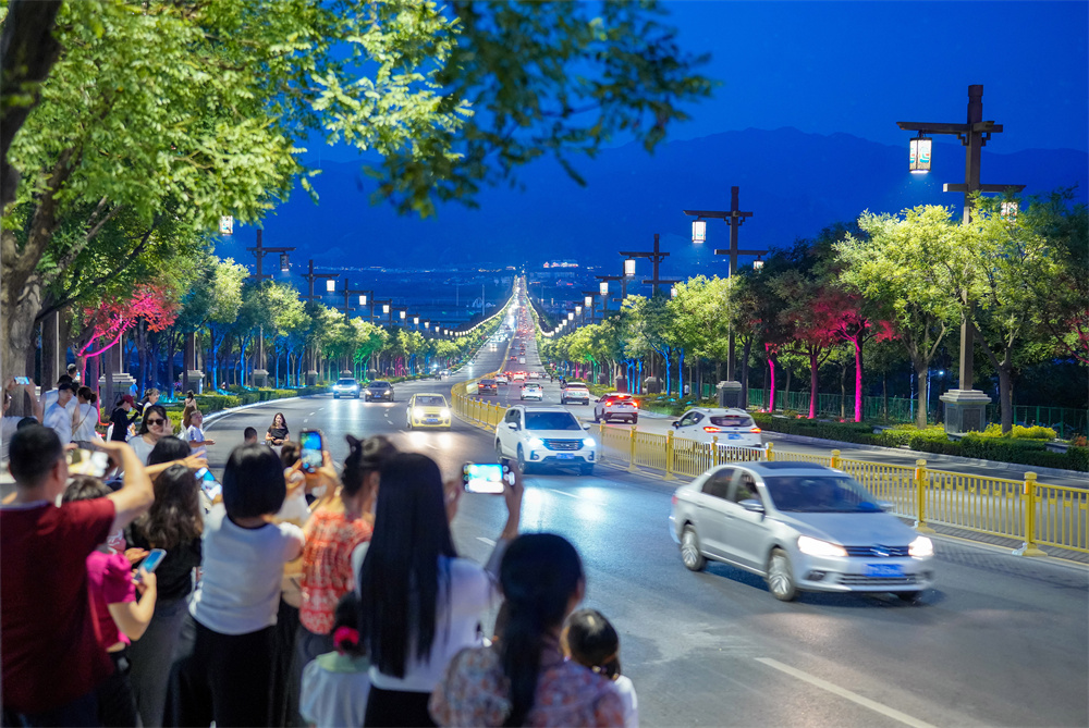 5月21日,游客在升级改造后的运城“盐湖006号灯杆”观景台拍照打卡。