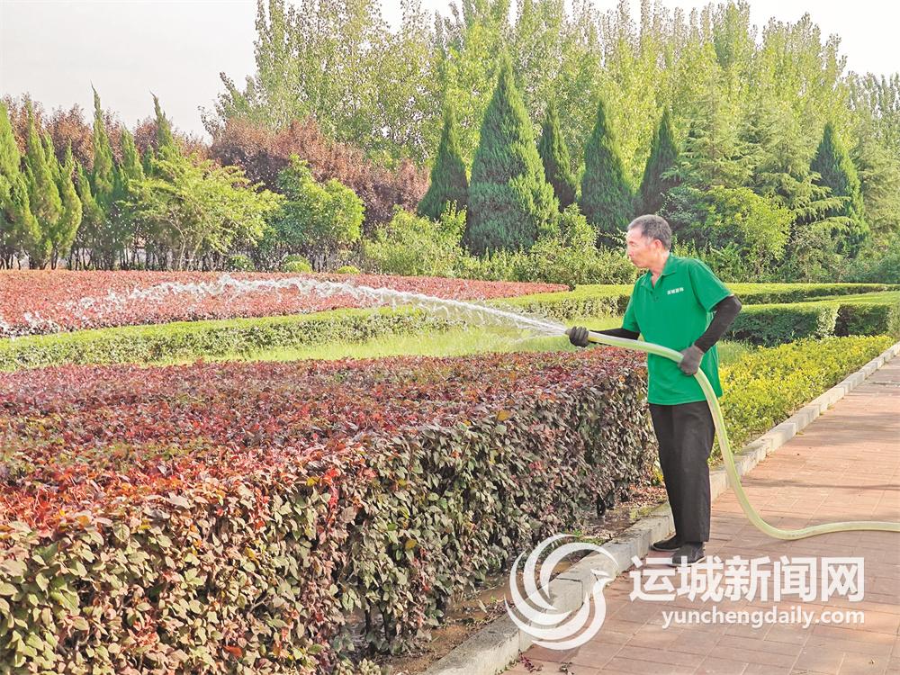彼时,在该小区附近的圣惠小游园的绿地上,市园林绿化服务中心南片区管护部的几名园林工人正在给绿植浇水。随着水车缓慢前进,园林工人不断移动水管出水口,使其对着绿植均匀浇水。浇过水后的绿篱显得愈发翠绿,焕发着蓬勃生机。