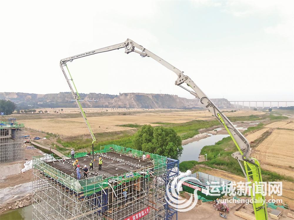 运城晚报讯(记者 祁克宁 通讯员 张晓鹏)“一、二、三,箱梁浇筑开始!”6月14日早5时许,河津市苍底汾河桥建设工程箱梁的0#块启动浇筑作业,采用的C50高标号混凝土,在河津境内尚属首次使用。