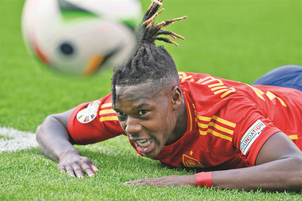 6月15日,西班牙队球员尼科·威廉姆斯在比赛中。