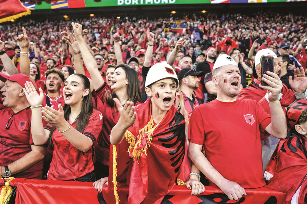 6月15日,阿尔巴尼亚队球迷为球员加油。