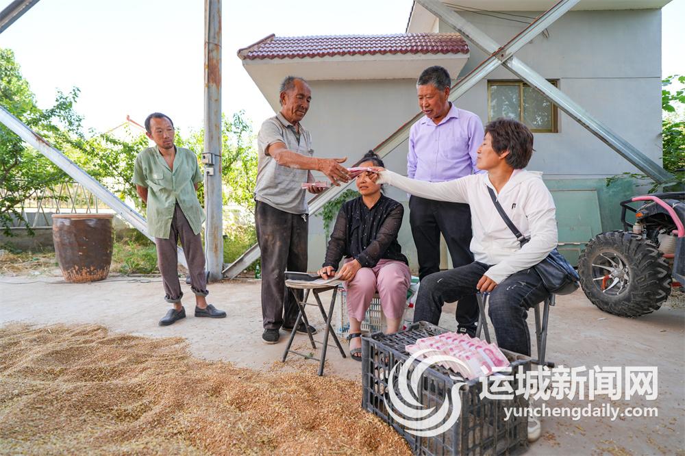 平陆县祥宁种养专业合作社社员在领取小麦销售款。