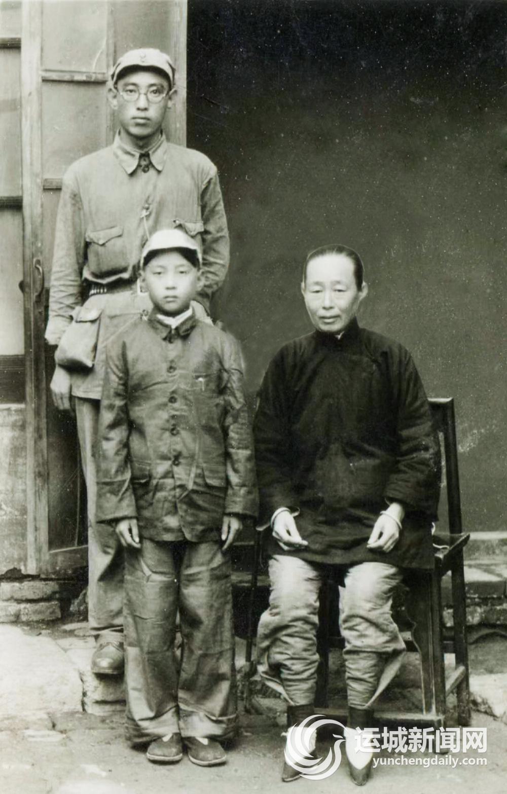 杨寿山(后)受伤后,他的母亲带着他10岁的儿子到长治后方医院看望他时合影。