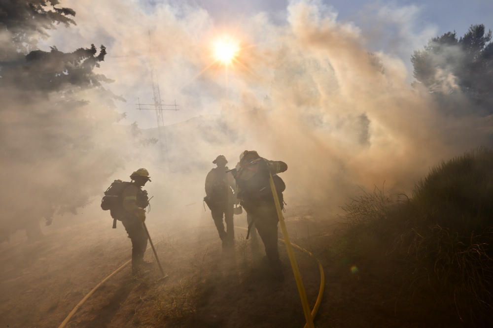 6月16日,消防队员在美国加利福尼亚州洛杉矶县西北部的戈曼地区进行灭火作业。