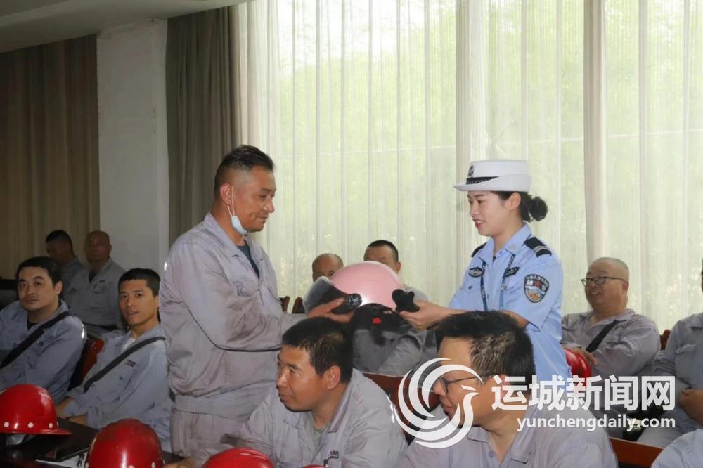 运城晚报讯(记者 刘凯华)“一盔一带指的是什么?”“喝多少酒会达到酒驾标准?”……6月14日上午,闻喜交警大队民辅警走进山西建龙公司,开展交通安全知识有奖问答活动。