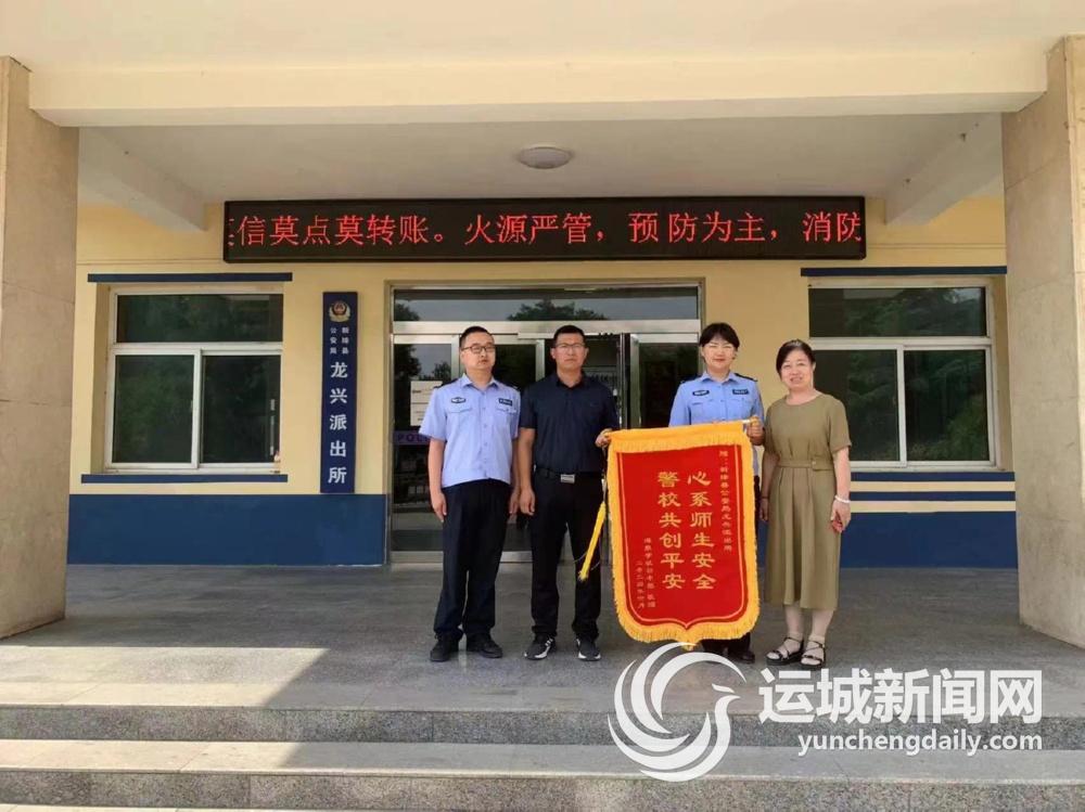 运城晚报讯(记者 樊朋展)6月14日,新绛县海泉中学师生代表将一面印有“心系师生安全 警校共创平安”的锦旗,送至新绛县公安局龙兴派出所民警手中,感谢民辅警为该校学校师生保驾护航。