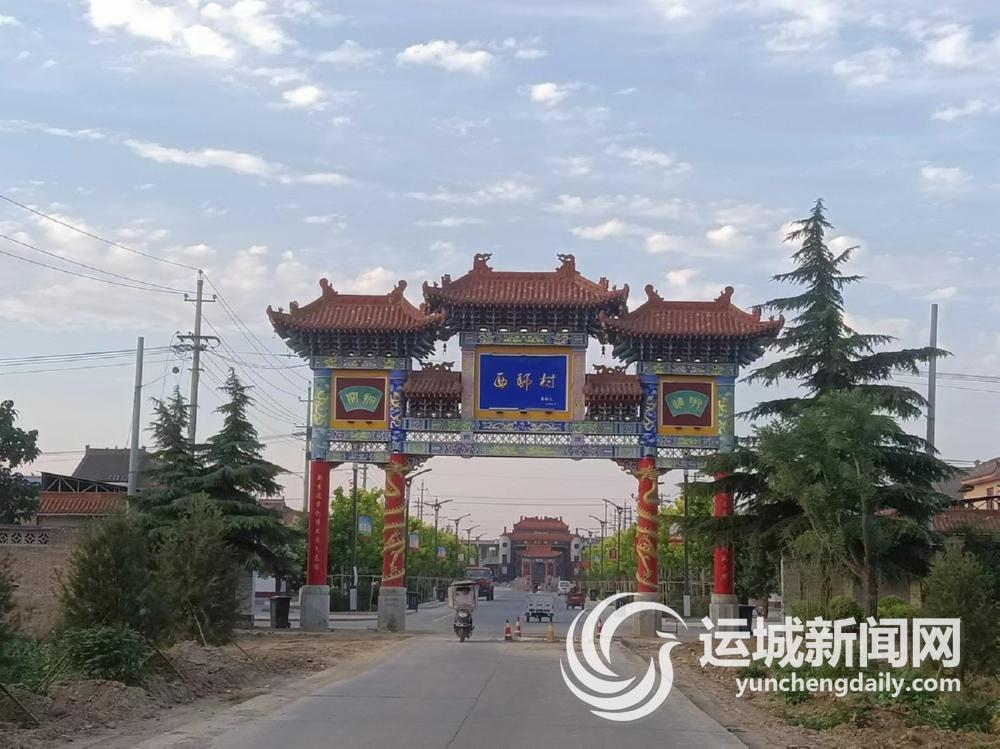 从荣河顺着荣师路北行3公里,便到了西师村南大门。大门楼巍峨壮观,气势如虹;门上琉璃瓦披顶,金字题名,楼角展翅,风铃脆鸣;门柱金龙缠绕,大气恢宏,楹联并陈,词意隽永。