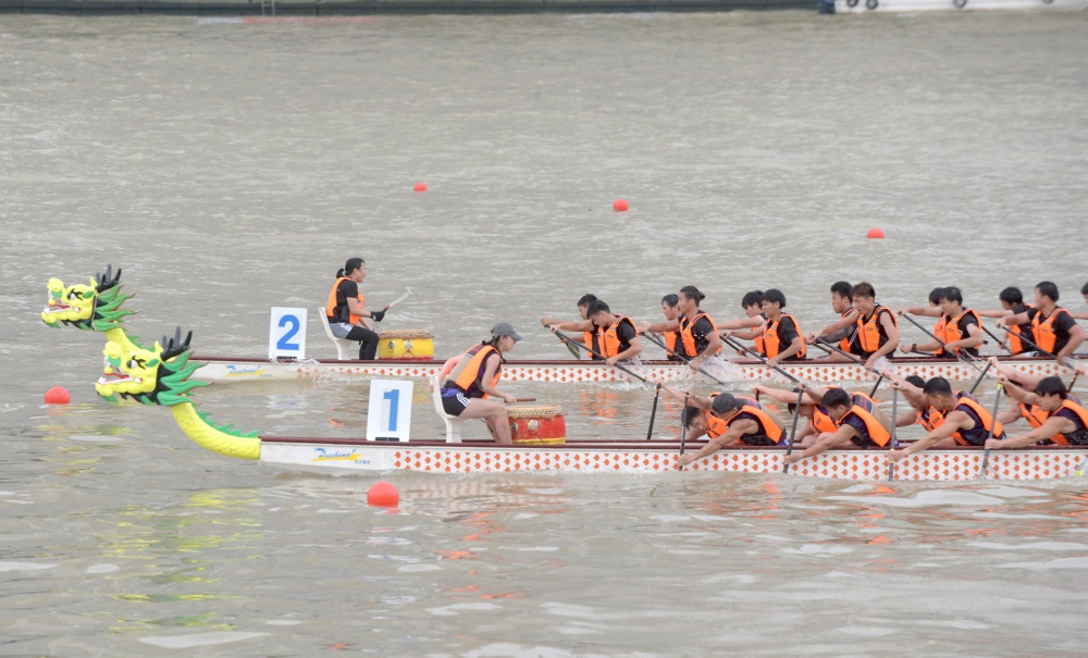 6月16日,参赛队伍在比赛中。当日,2024年广州国际龙舟邀请赛在中大北门广场至广州大桥之间的珠江河段举行,共有来自中国、美国、加拿大、马来西亚、哈萨克斯坦等国家和地区的111支龙舟队伍,近4000名运动员参赛。