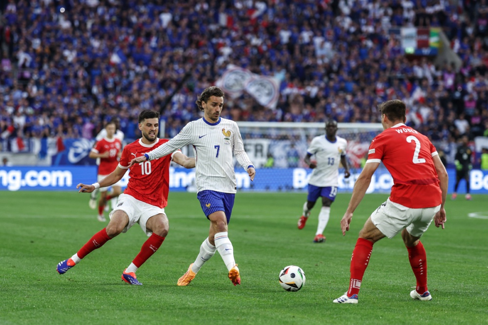当日,在德国杜塞尔多夫进行的2024欧洲足球锦标赛D组首轮比赛中,法国队1比0战胜奥地利队。