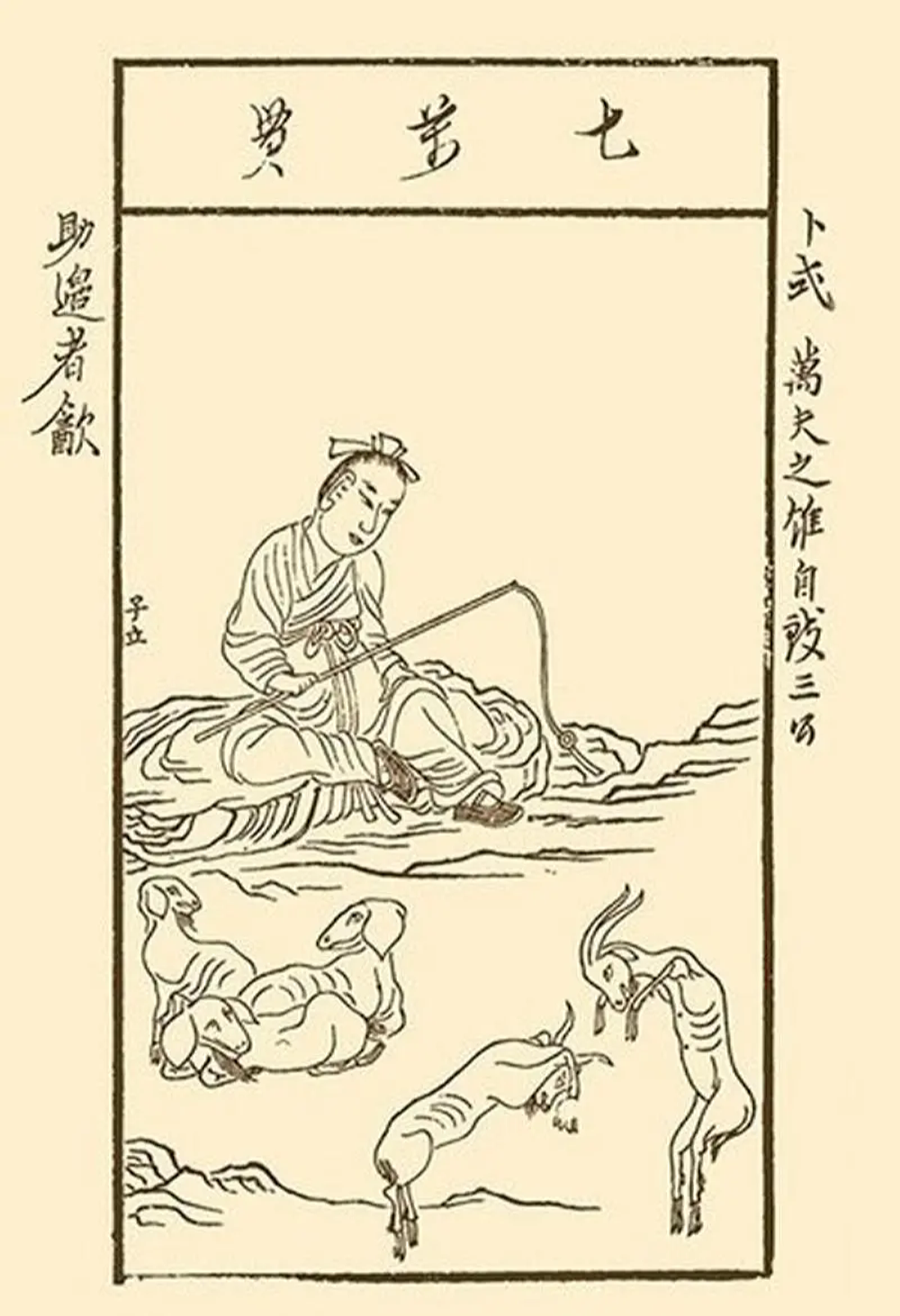 《汉书》《史记》等典籍记载了他的故事。卜式有一个弟弟,当弟弟长大后,卜式从家中分出居住,当时他只取羊百余只,田宅财物都分给了弟弟。卜式入山牧羊十余年,羊多达千余头,于是便购买田宅。而他弟弟不善经营,倾家荡产,卜式于是多次分给弟弟财产。由此可见,卜式的为人非常质朴厚道。
