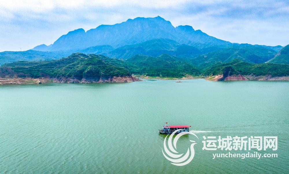 6月19日,在垣曲县古城镇境内拍摄的壮美黄河。清澈的黄河水、绿色的岸畔与蓝天白云交相辉映,形成了一幅亮丽的黄河生态画卷。