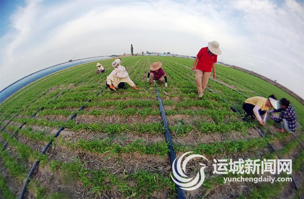 6月20日,新绛县北张镇北行庄村药农在给中药材除草保墒。随着夏至到来,农民抓紧开展夏播扫尾、抗旱除草等,努力争取丰产丰收。