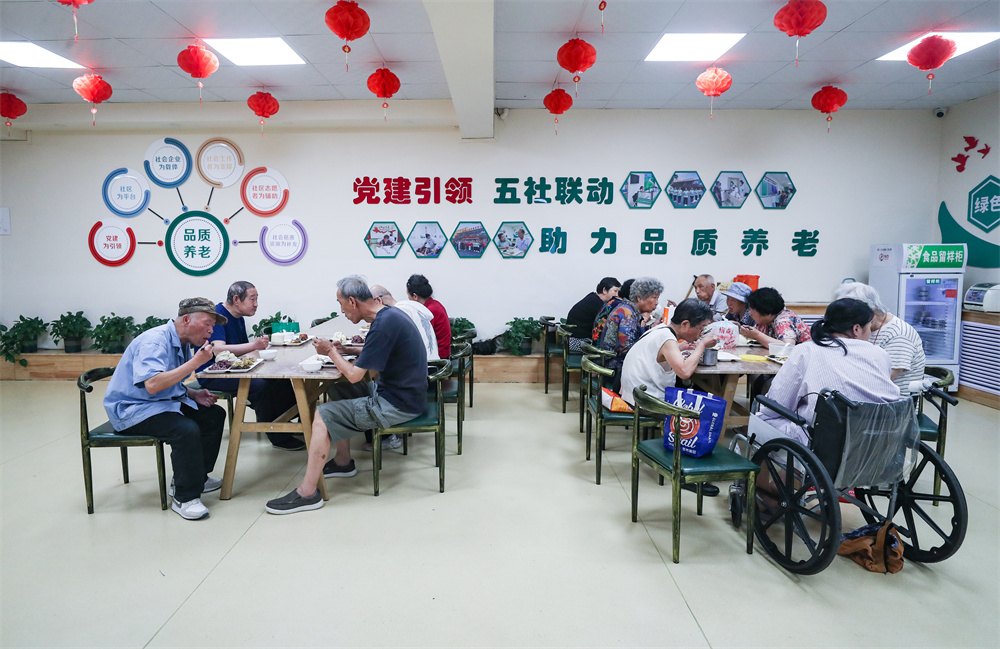 6月21日,居民在沈阳市牡丹社区党群服务中心吃午饭。