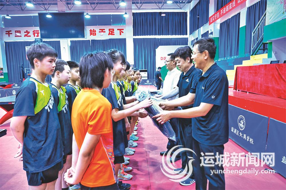 盐湖区大禹学校自成立以来,在狠抓教学质量提升的同时,紧紧围绕学生德智体美劳全面发展的理念,充分利用体育课及社团活动,大力开展体育教学及学生兴趣培养工作,培育了一批又一批有理想、有本领、有担当的时代新人。特别是该校创建了乒乓球训练基地,大胆探索,体教融合,在有关部门的支持和关怀下,为国家队、省队、市队及高校输送了30多名高水平运动员。去年8月9日,在山西省第十六届运动会中,盐湖区大禹学校乒乓队作为运城市代表队,获得一金两银的成绩。