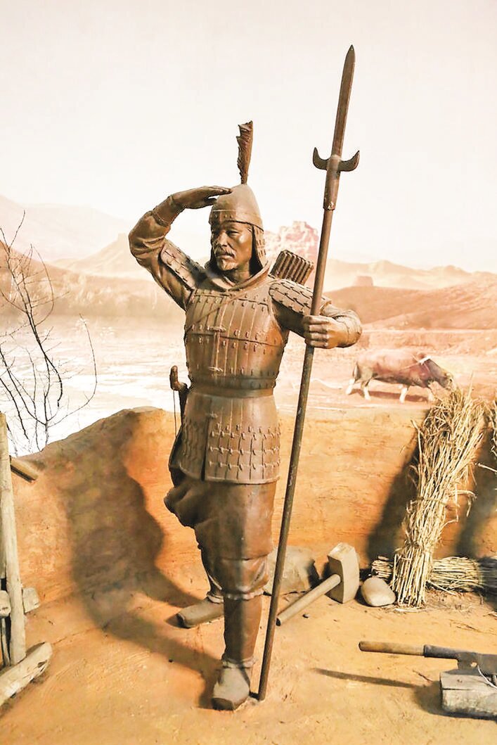 汉代军屯守边士兵雕像 (资料图)