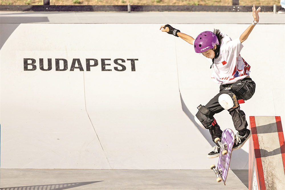 6月23日,中国选手崔宸曦在比赛中。最终她位列第七名。当日,巴黎奥运会资格系列赛布达佩斯站滑板女子街式决赛在匈牙利布达佩斯举行。
