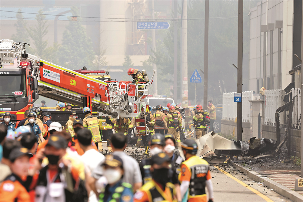 6月24日,消防员在韩国京畿道华城市的电池工厂火灾现场工作。