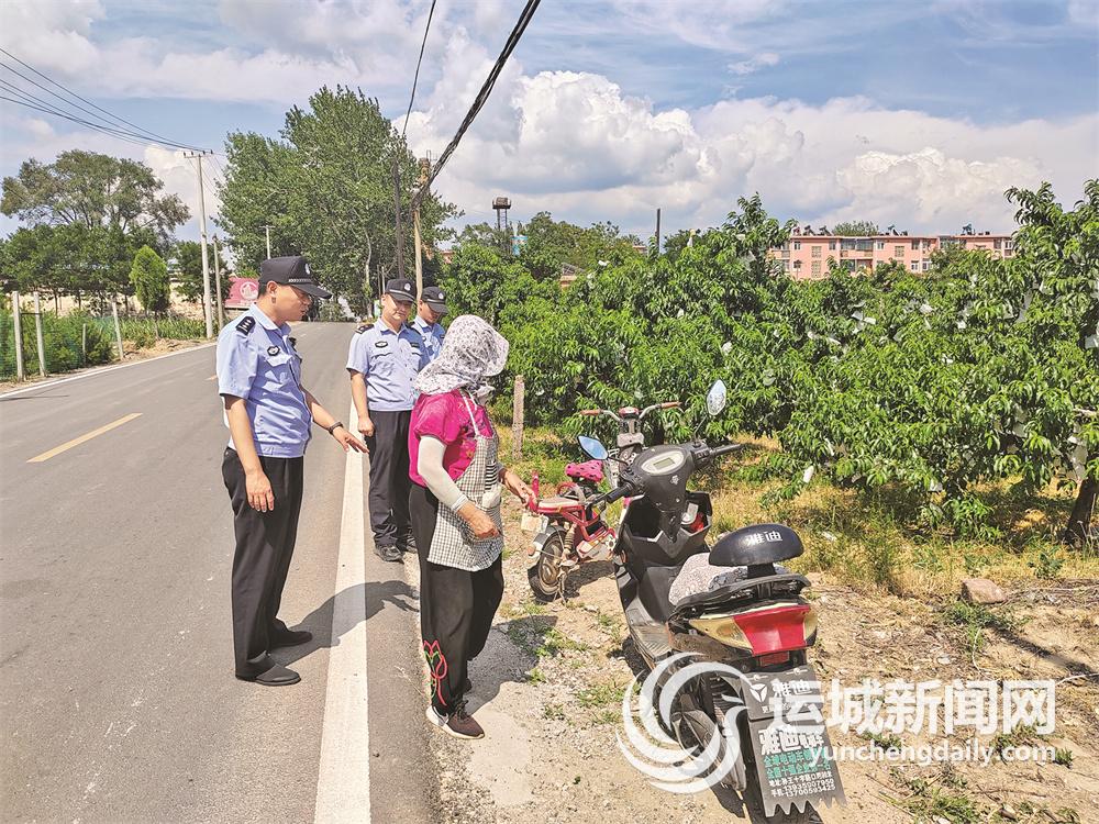 近日,绛县公安局磨里派出所民辅警在巡查中发现,两辆电动自行车随意停放在田间地头,见上面的车钥匙没有拔掉,立马将其推至安全地带,并拔掉车钥匙送还村民的手中,再三嘱咐村民一定要时刻注意自己的车辆,增强自身防范意识。 记者 张蕊彤