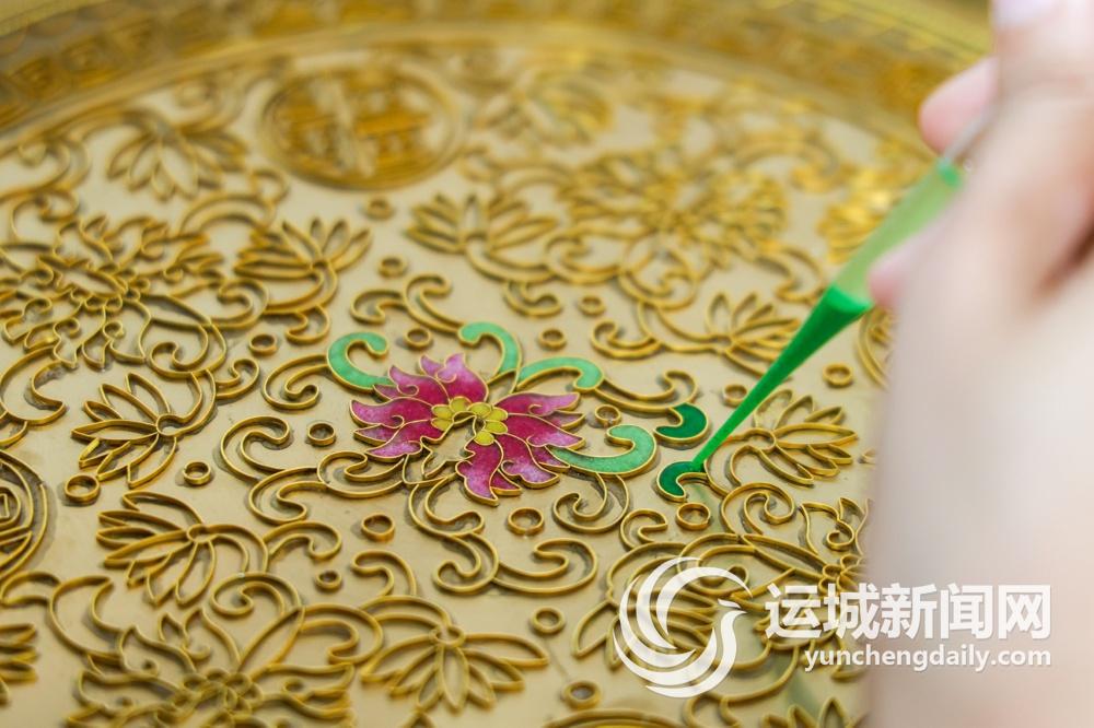 恢宏大气的《鹳雀楼》、精美绝伦的《朝元图》……走进省级非物质文化遗产代表性项目掐丝珐琅釉画第五代传承人梁文平的工作室,制作精良的各类作品绚烂华贵、令人惊叹。