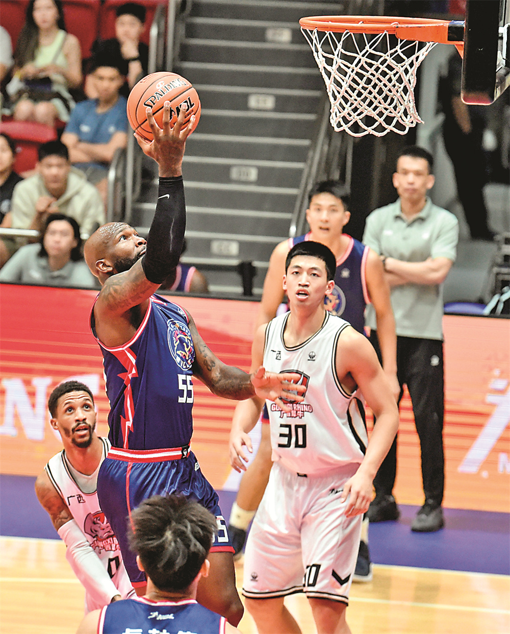 当日,在香港举行的2024年全国男子篮球联赛(NBL)常规赛第5轮比赛中,香港金牛队115比89战胜广西威壮队。