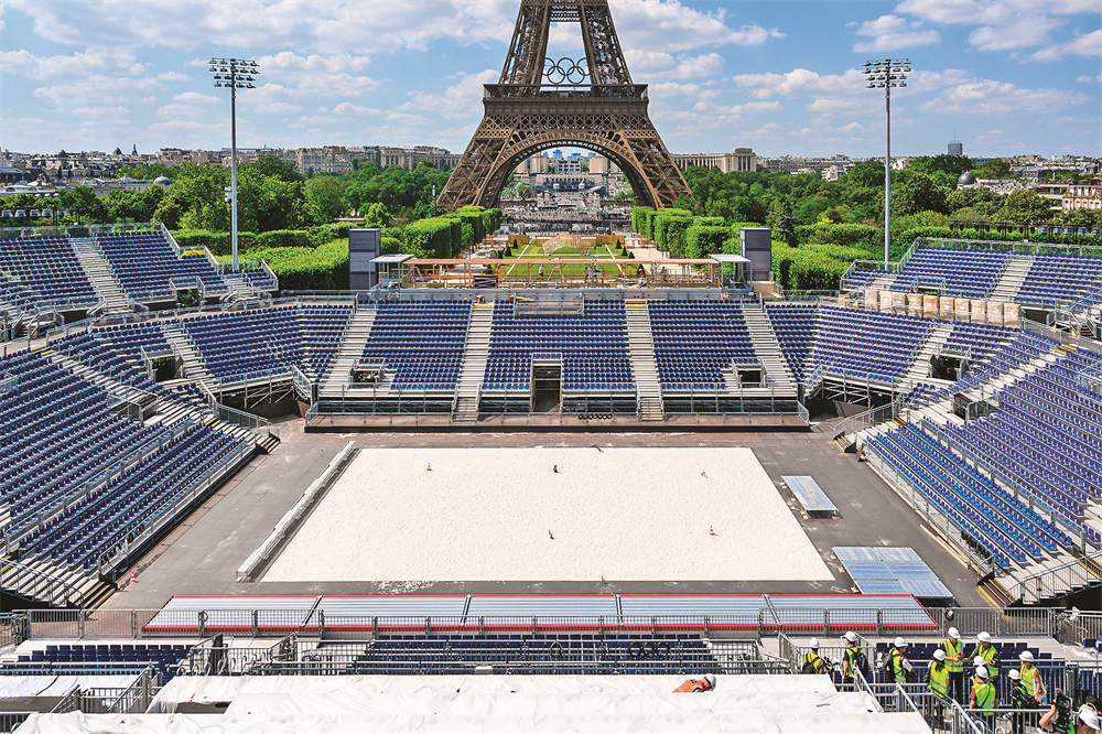 2024年巴黎奥运会期间,埃菲尔铁塔体育场将举办沙滩排球比赛。 新华社发(朱利安·马蒂亚) 摄