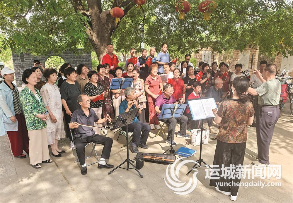 稷山县民乐园大槐树小广场,每天清晨,周围的居民们就会聚集在这里,歌唱伟大祖国、伟大的党,嘹亮的歌声响彻公园。 安新明 摄